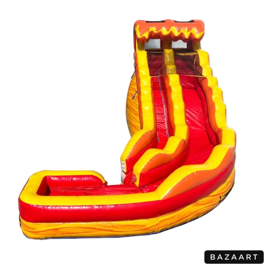 Take fun to new heights with the ALL-NEW 17' Lava Wave Marble Curved Inflatable Water Slide. This 17' tall inflatable water slide brings a fresh new take on standard slides by curving the sliding line that adds a little something extra to the experience. Climb All the Way to The Top and Blast Down the Slide into The Splash Pad and Cool off. Our inflatable slide has a water misting system sending cool water down the slide providing hours of cool, refreshing fun and entertainment for all your guests. The perfect addition to your next gathering, Great for all ages and thrill seekers